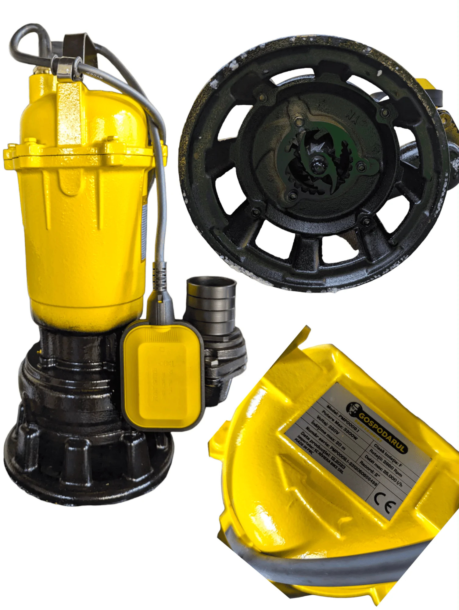 - Performanță Ridicată: Cu un debit maxim de 2500l/h și o înălțime de pompare de 20m, această pompă asigură o evacuare rapidă și eficientă a deșeurilor.